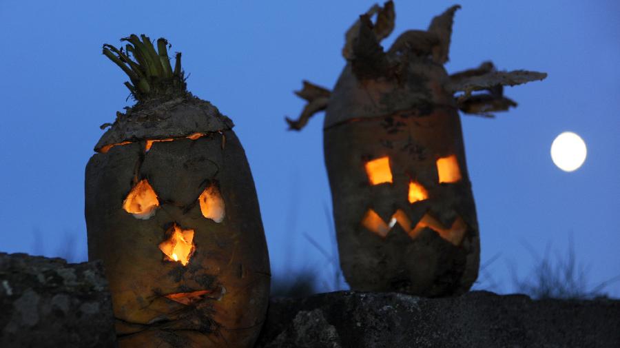 Nach alter Tradition Rübengeister aus Futterrüben schnitzen. Bitte mitbringen: ein normales Essbesteckmesser mit stabiler Klinge oder Kinderschnitzmesser mit feststehender, stabiler Klinge, ein Küchenmesser mit Spitze, stabiler Löffel, unempfindliche Kleidung, Verpflegung